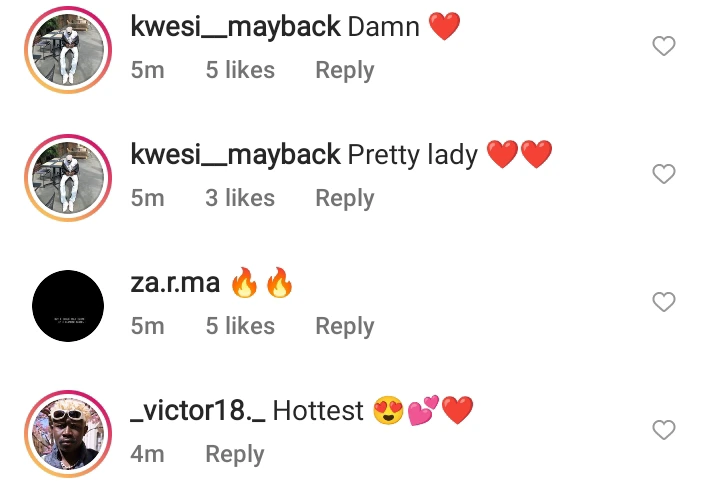 She never failed to accompany the photos with a write-up, as she said, “Use this one, hold body.” Many people were excited to see the young actress in these lovely photos as they reacted positively to the post, complimenting her for being a beautiful young lady, while others gave their thoughts and opinions on what they saw.